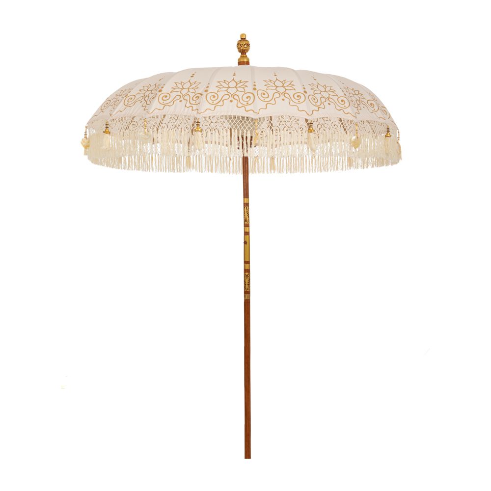 Ομπρέλα μακραμέ BALI λευκή χρυσή διάμετρος 185εκ.
