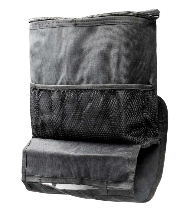 Διαθέτει μεγάλη ισοθερμική θήκη, 3 διχτυωτές θήκες περιμετρικά, ενώ, στο κάτω μέρος της διαθέτει θήκη για ρολό χαρτί