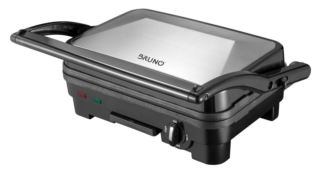 Τοστιέρα εξαιρετικής απόδοσης της Bruno με ισχύ 1600W και δυνατότητα ανοίγματος της επάνω πλάκας κατά 180° για ακόμα μεγαλύτερη επιφάνεια ψησίματος.