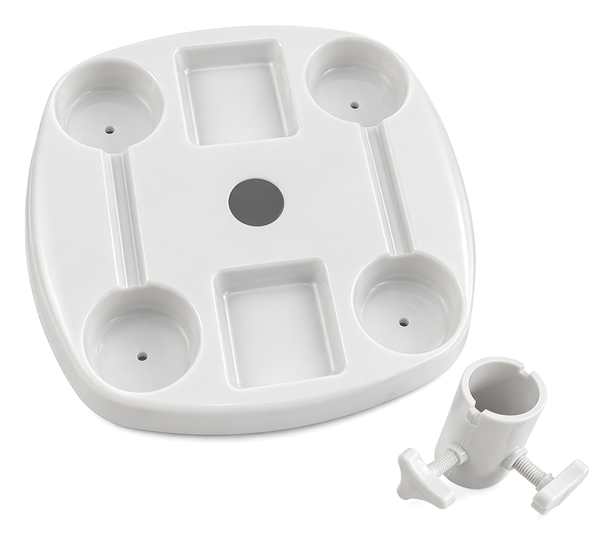 Πρακτικό τραπεζάκι της BRUNO για ομπρέλα θαλάσσης, ιδανικό για να τοποθετείτε ροφήματα, σνακ και άλλα προσωπικά αντικείμενα στην παραλία. Εφαρμόζει εύκολα στο κοντάρι της ομπρέλας και διαθέτει 4 θέσεις για ροφήματα 2 για άλλα προσωπικά αντικείμενα