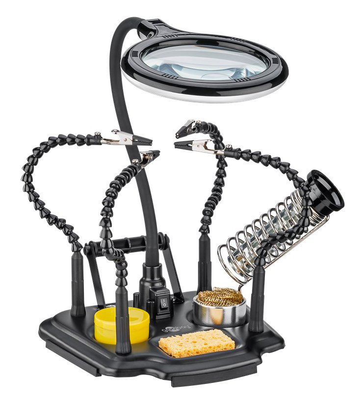 GOOBAY βάση στήριξης πλακέτας 76558 με μεγεθυντικό φακό & θέση για κολλητήρι, 4x βραχίονες, μαύρη