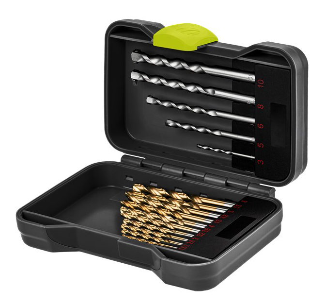 Όλα τα τρυπάνια του σετ είναι τοποθετημένα σε βολική πλαστική θήκη για την εύκολη αποθήκευση και μεταφορά τους.