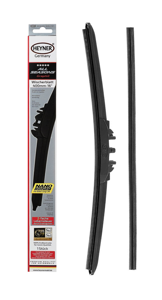 Υαλοκαθαριστήρας αυτοκινήτου της HEYNER με NANO graphite τεχνολογία που προσφέρει ελαστικότητα και αντοχή για μακροχρόνια χρήση.