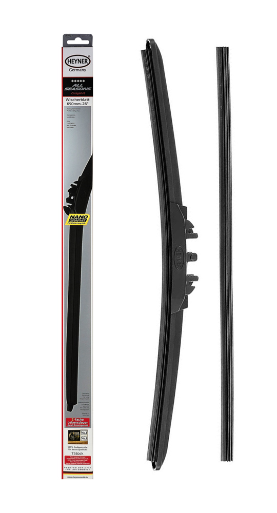 Υαλοκαθαριστήρας αυτοκινήτου της HEYNER με NANO graphite τεχνολογία που προσφέρει ελαστικότητα και αντοχή για μακροχρόνια χρήση.