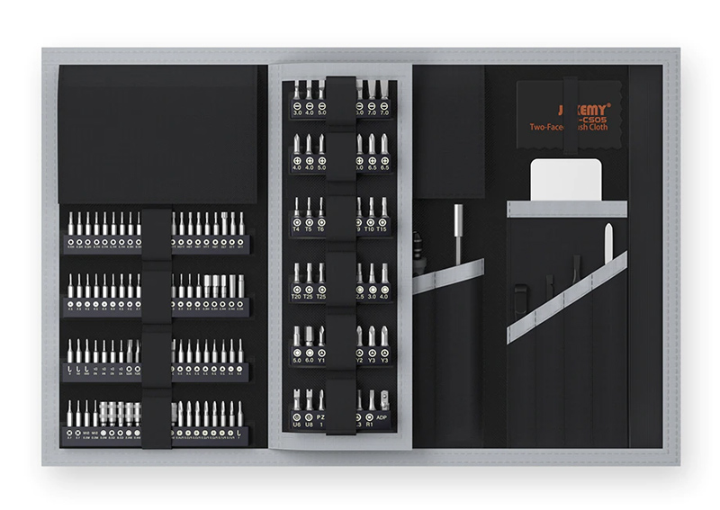 Σετ εργαλείων από την Jakemy που αποτελείται από κατσαβίδια, προεκτάσεις, μαγνητιστή, τσιμπίδα, εργαλεία ανοίγματος, βεντούζα διαχωρισμού, μύτες κατσαβιδιού κ.α.