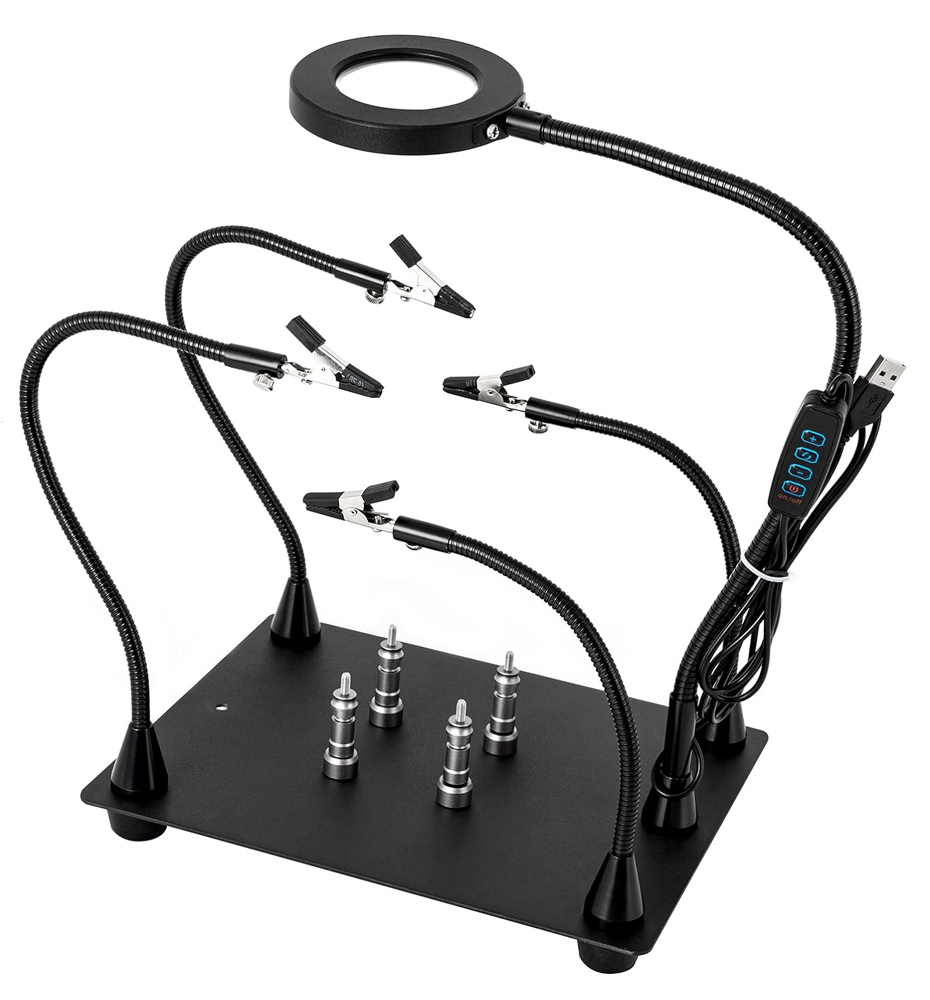 KAISI βάση πλακέτας PCB TE-808 με μεγεθυντικό φακό & βραχίονες, μαύρη