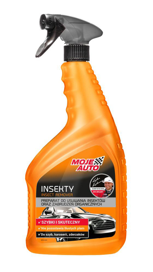 Υγρό καθαριστικό σπρέι που καθαρίζει τα οργανικά κατάλοιπα των εντόμων. Αφαιρεί την επίμονη βρωμιά χωρίς να αφήνει ίχνη. Είναι κατάλληλο για χρήση στις γυάλινες επιφάνειες, το αμάξωμα, τους προφυλακτήρες.