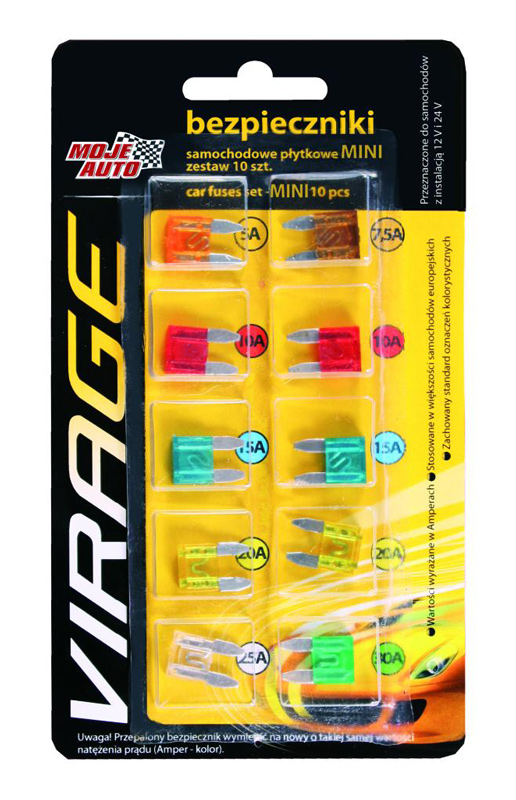 Σετ μαχαιρωτών ασφαλειών αυτοκινήτου της Moje Auto που αποτελείται από 10 ασφάλειες.