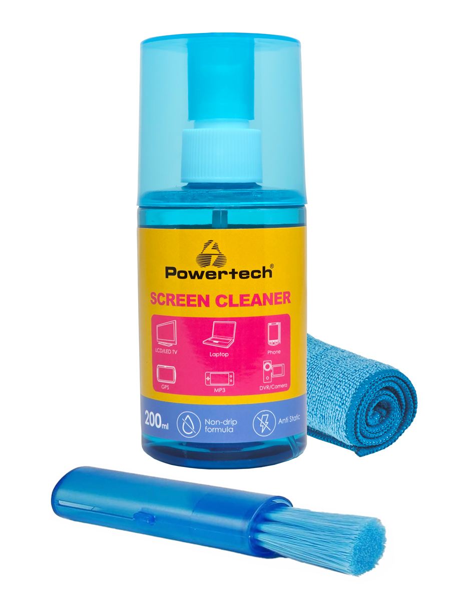 Το σετ καθαρισμού της Powertech αφαιρεί αποτελεσματικά σκόνη, δαχτυλιές και λοιπά ξένα σώματα από την οθόνη της συσκευής σας.
