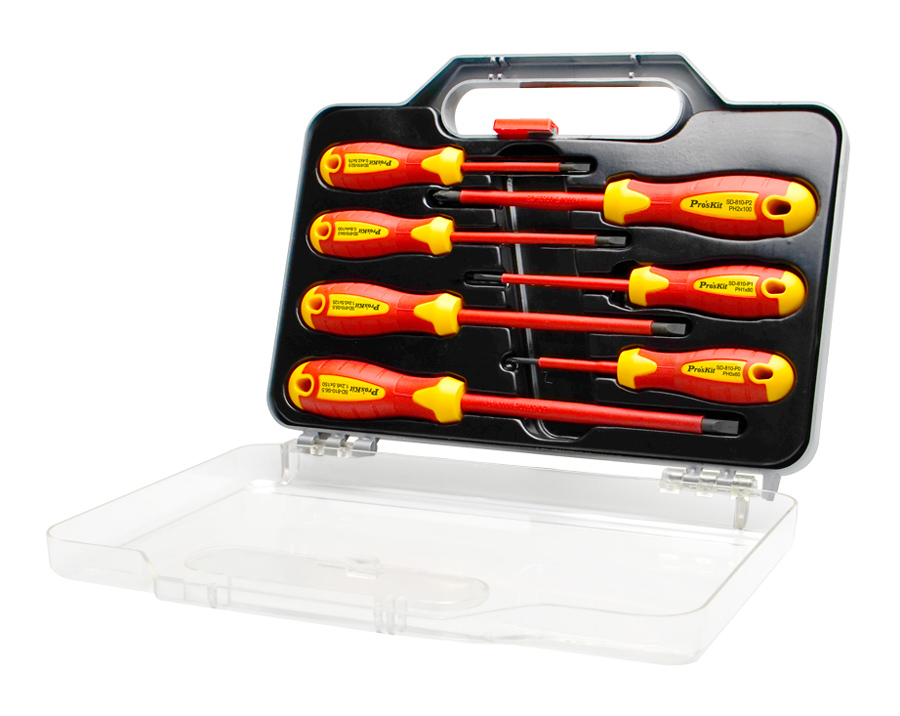 Σετ κατσαβιδιών της PROSKIT το οποίο αποτελείται από 7 κατσαβίδια ηλεκτρολόγου με μόνωση 1000V και μαγνητική μύτη.